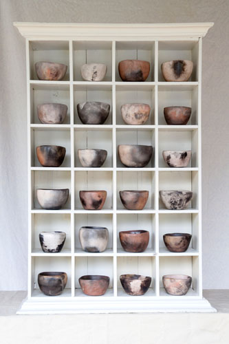 Over the past two years making these bowls has been a passion, when for the first time, I could fire them with local materials on my own land. It’s a process that relies on many elements: wind, smoke, the right wood and sawdust, placement of the bowls in the kiln (galvanized barrel), the heat of the fire, and ultimately serendipity. The bowls are given over to the fire (Agni, the fire god) and the following morning they are delivered sunk in ash and warm embers.
