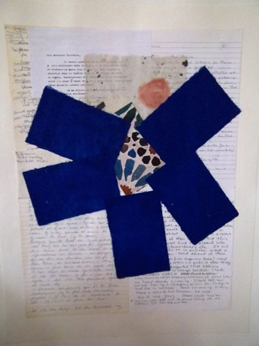 Birgitte Bush, "BLUE CROSSING" letters, handmade paper; 20 × 30"