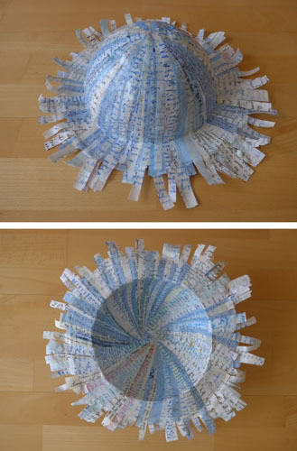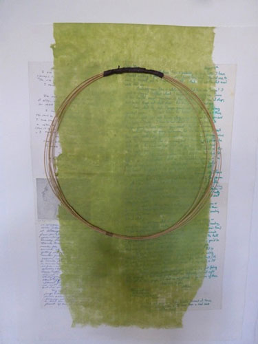 Birgitte Bush, "HOOP" hand-made paper, reeds, letters, 20 x 30"