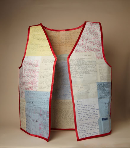 Ursina Vogt, "LIFE VEST" letters, binding, backing, stitching, 24 in w. x 29 in
