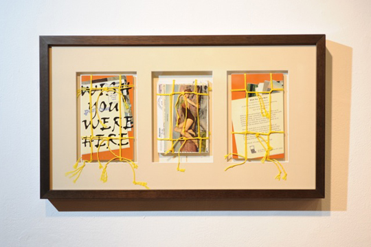 Robert Seward and Elmer Luke, "WISH YOU WERE HERE" paper, twine, book of postcards, 12.5 x 22" framed, books 4.25 x 7", numbered edition of 125