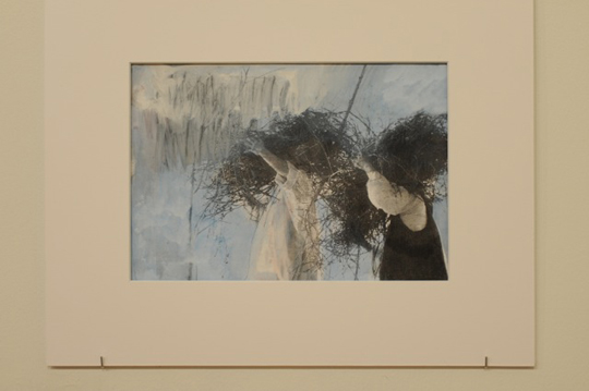 Claire Rosenfeld. "WOOD CARRIERS/STORMY SKY" collage 15 x 20.5"