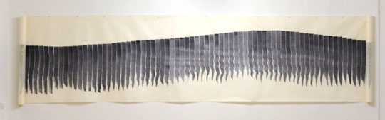 Theresa Antonellis, "ONE TO ONE (ONE LINE ON ONE BREATH) iron oak gall ink on mulberry paper, 36 x 240"