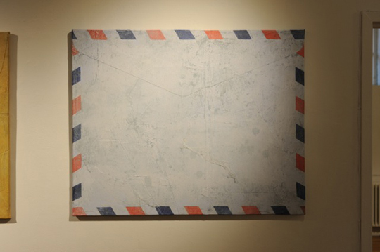 Robert Spellman. "PARTIALLY RESTORED ENVELOPE" acrylic and collage on canvas, 32 x 40'