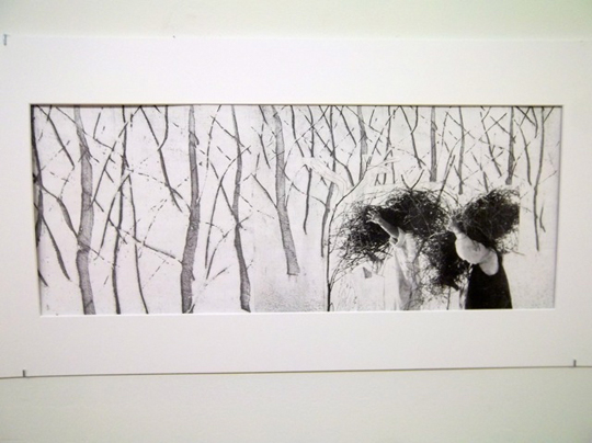 Claire Rosenfeld, "WOOD CARRIERS/IN TREES" collage, 13 x 25.5"
