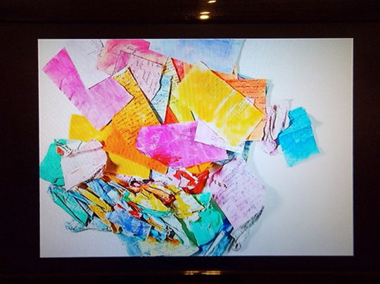 Lanny Harrison, "TO MIMI" construction paper cut-outs, postcards, letters, 25 x 36"